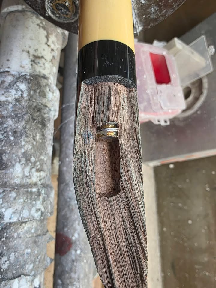 The image on the left shows a catastrophic failure. As you can also see, the hole is much deeper than it needs to be, and there wasn’t a single drop of glue used when it was put in the cue. This is a typical assembly process used by many production companies, and you would be surprised at some of the big brands that do this. Only one small example of the quality differences between a production cue, and a well-built production cue but as you can see it’s a pretty important one.